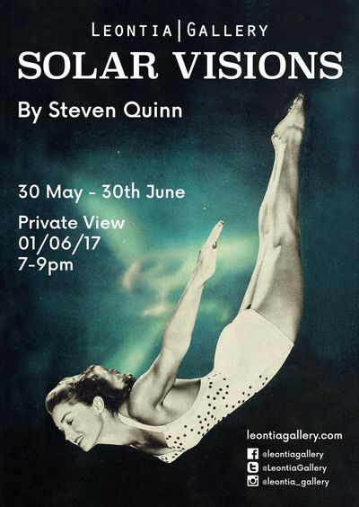 THE LEONTIA GALLERY PRESENTS ‘SOLAR VISIONS’ A New solo exhibition by Steven Quinn exploring the planet and its future through the medium of collage and print. From the 30th of May to the 30th of June Art lovers are invited to the Leontia Gallery pop-up at 6-10 Central Parade, 137 Hoe Street, Walthamstow, E17 4RT to view the stunning new solo show by Steven Quinn The Leontia Gallery is thrilled to present Irish born, London based, artist extraordinaire Steven Quinn to present his newest body of work exploring our relationship with the planet and its potential prospects. Science fiction meets reality where humans holiday on the moon, take boat rides through the solar systems and raise a glass behind a screen of nuclear explosions. It’s a comprehensive message of human behavior and aspirations, innate with our desire to consume, to love and to destroy. This stunning new body of work promises to be some of Quinn’s finest work to date. Compromising new and never been shown works, including Quinn’s signature collages using hand cutouts from vintage magazines and found ephemera. By playfully juxtaposing commercial and dystopian images, he simultaneously highlights the darker social, political, commercial and climactic issues at hand. Steven Quinn is a hotly tipped artist and has shown his work alongside names such as Damien Hirst and Sarah Lucas at Tate Britain. He has also exhibited at the National Portrait gallery, at the renowned Photographers gallery in Soho, the James Freeman gallery and in various venues throughout London. Quinn has also shown his work overseas in New York and Chicago. Leontia Reilly, the founder of Leontia Gallery, will be offering private viewings and consultations to talk through the artwork whilst sharing industry insight on investing in art.